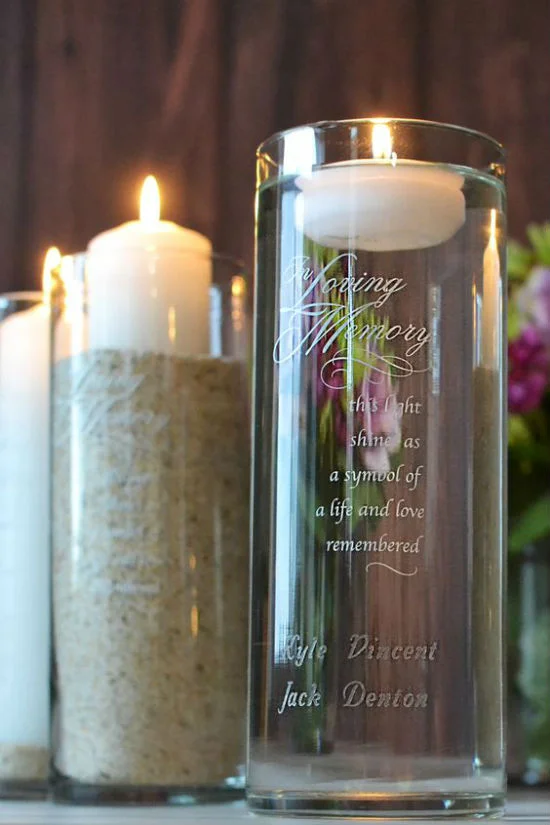 Candles are always a great way to remember someone. At many memorials, people light candles and it's a nice gesture at a wedding as well.